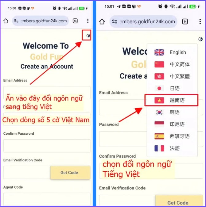 Bước 1: Truy cập website: https://members.goldfun24k.com/register