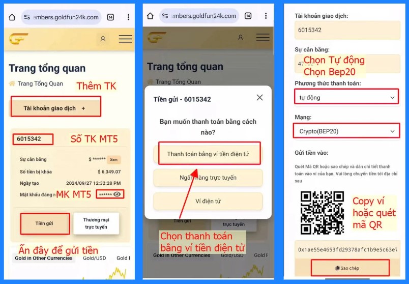 Phần 3: Hướng dẫn nạp tiền vào sàn giao dịch Goldfun