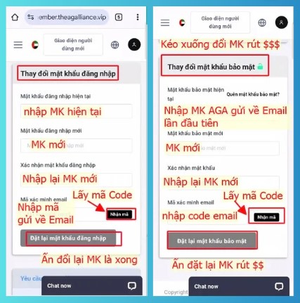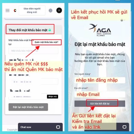 Hướng dẫn toàn tập về mật khẩu AGA : đổi MK đăng nhập, mật khẩu rút tiền, phục hồi mật khẩu.